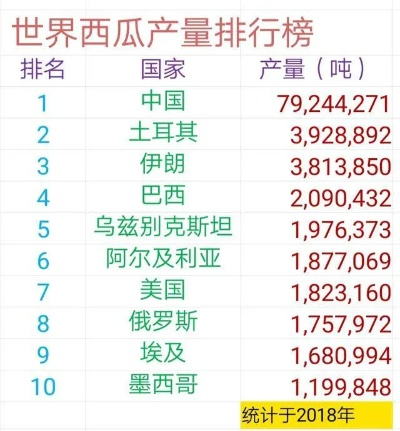 通过对“世界西瓜国家排名”的探讨,我们可以发现,中国的西瓜产业在全球市场中占据领先地位,无论是产量还是品质都表现出色,印度、土耳其、伊朗和巴西等国家也在西瓜生产中取得了显著成绩,这些国家的西瓜产业不仅满足了国内市场的需求,还出口到其他国家,为全球西瓜市场的繁荣做出了重要贡献。